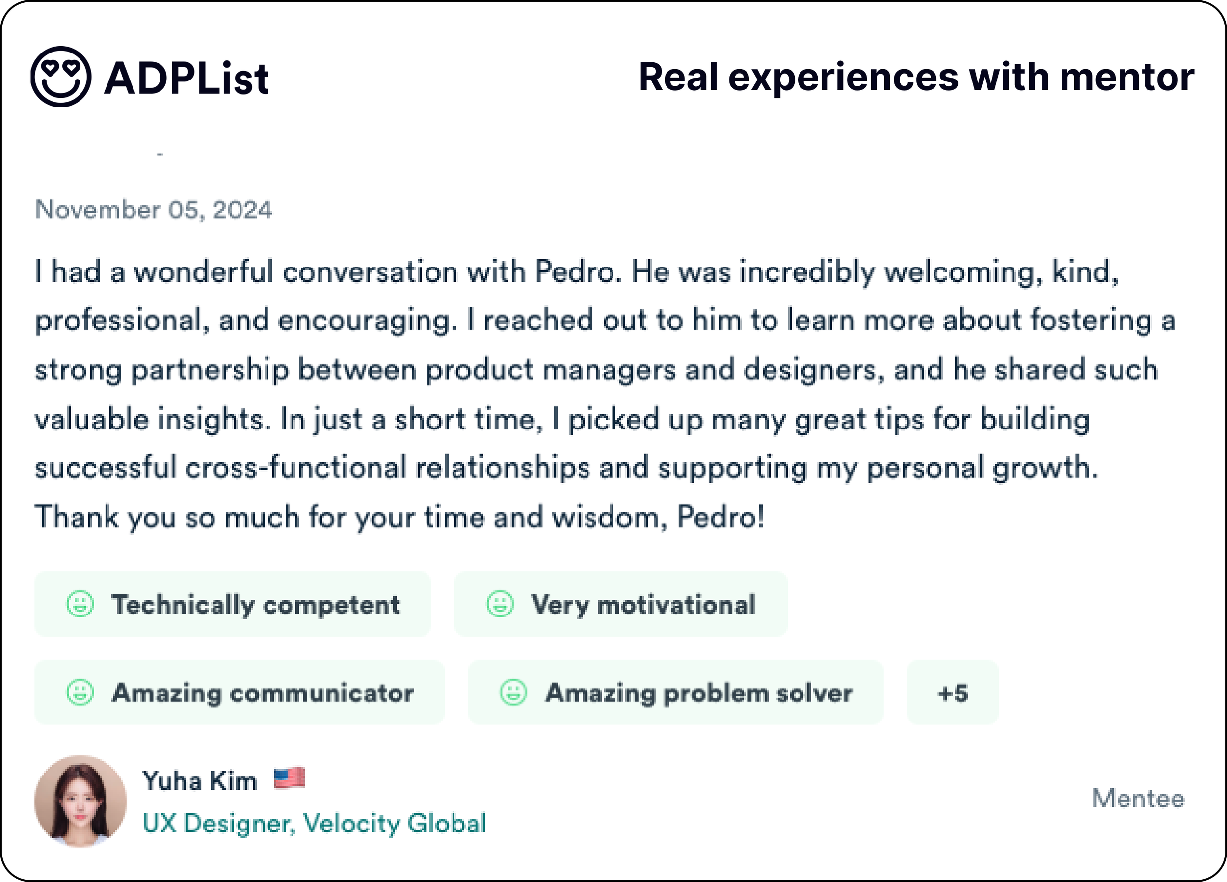 Pedro is a Brazilian product leader with a master's degree in Design Management and 15 years of experience in several fields of design practice from design consultancies to in-house teams, with a dash of entrepreneurship in the meantime. He is comfortable in fast-paced environments and leading design teams that build meaningful experiences for people facing complex problems.